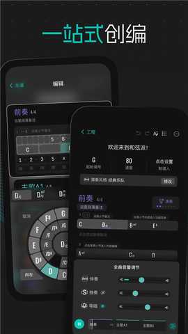 具备全面的曲谱编辑功能,支持和声进行、速度节拍和段落小节的调整,从零开始构建自己的音乐作品。