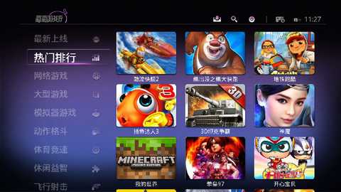 在本站下载葡萄游戏厅TV版后,直接安装到电视上。安装完成后,打开会看到丰富的游戏列表,选择自己感兴趣的游戏进行下载。