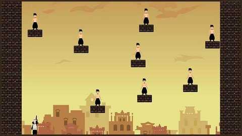 通过点击屏幕发射子弹,目标是击倒所有画面中的敌人,完成关卡挑战。
