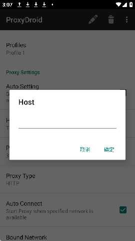 2、打开应用,在Host处输入代理服务器IP地址,在Port处输入对应的端口号