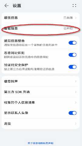 2、进入到设置页面,选择智能信息。