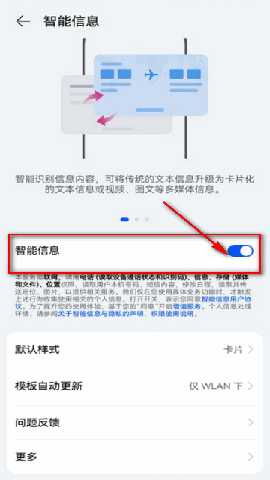 3、将智能信息后面的开关按钮关闭即可。