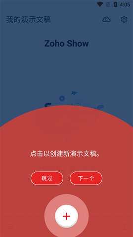 在本站下载并安装Zoho Show软件后,打开软件并点击下方的加号,开始创建新的演示文稿。