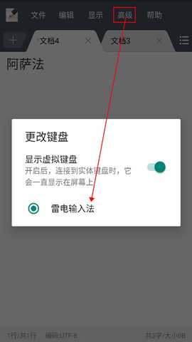 用户如果觉得系统的键盘用起来不熟练,可以点击上方的“高级”,然后点击更换键盘,就可以将键盘换成自己手机内常用的键盘啦!