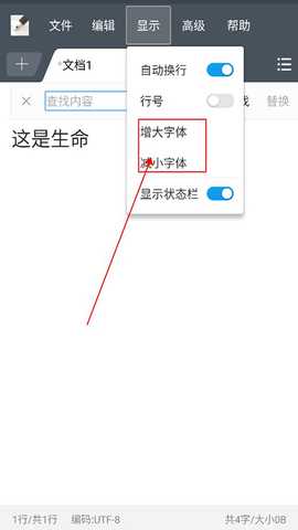 用户点击上方的“显示”,点击下方的增大或减小字体,就可以进行字体的修改啦!