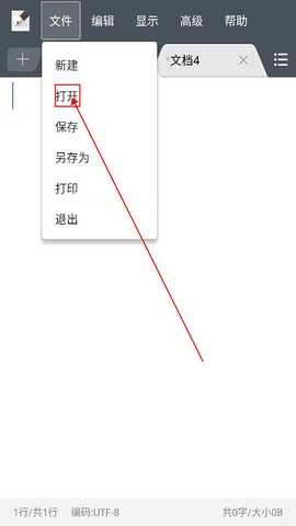 1、用户如果想要导入自己已有的文档,可以点击左上角的“文件”,选择“打开”。
