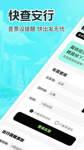 特惠高铁查票是一款专为高铁出行而设计的软件,为用户提供快速、便捷的高铁票查询服务。用户只需输入出发地和目的地以及日期,即可在短时间内获取相关的高铁票信息。软件还具备出行提醒功能,确保用户不会错过重要的行程安排。无论是商务出行还是休闲旅游,特惠高铁查票都能为用户带来优质的出行体验。