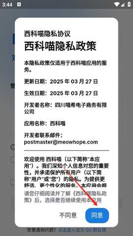 在本站下载西科喵并完成安装后,打开并同意相关协议,确保了解使用条款。