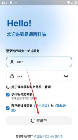 输入个人的学号和密码以进行登录操作。