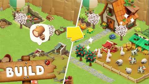 可以通过建造各类特色建筑,来提升生产能力和资源利用率,进一步发展自己的农场。
