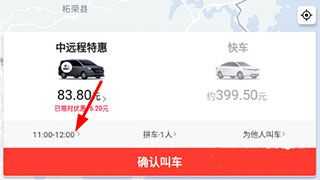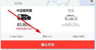 2、接着选择拼车人数,然后确认叫车即可。