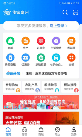 1、全方位服务:我家亳州整合了政府管理、公共服务与商业应用,居民可以在一个平台上完成多种服务,极大地方便了日常生活。