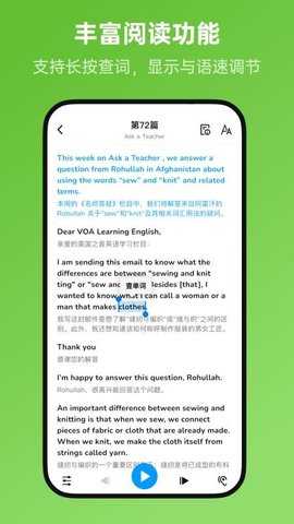 自定义音频播放速度,满足不同学习者的需求,便于跟读和模仿。