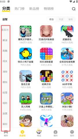 2、也能够切换下方的分类栏,在分类栏,按照分类找到自己想玩的小游戏;