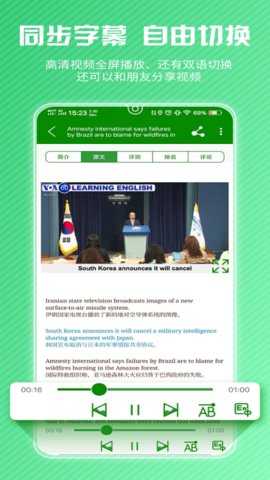 视频观看:用户可在线观看所有英语视频,随时收听美式英语的真实发音。