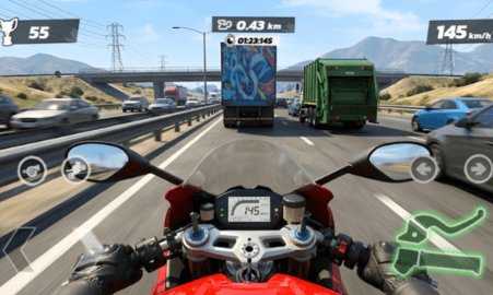 游戏中的摩托车解锁与升级系统非常强大,可以通过不断提升座驾的性能,来应对各种复杂的路况,掌握真正的高速公路竞速技巧。
