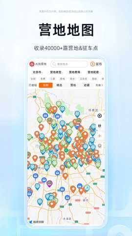 软件支持房车、床车、拖挂等多种露营方式,根据自身情况选择合适的营地。