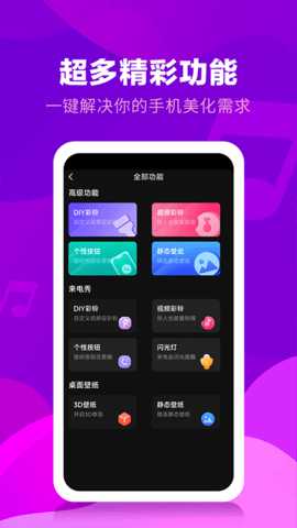 一键设置:轻松设置来电视频铃声、联系人专属铃声和动态壁纸等,操作十分方便。