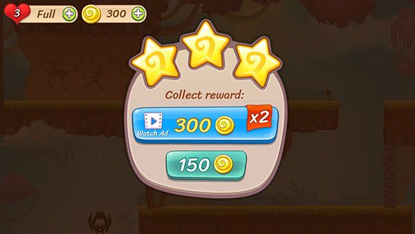 当我们成功帮助鲍勃抵达终点,就能获得关卡胜利,同时还能得到金币奖励。