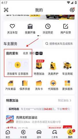 点击我的页面中【添加爱车】,如图所示。