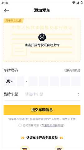 进入新页面,按提示上传证件,点击【提交车辆信息】即可完成认证