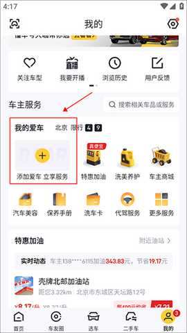 点击我的页面中【添加爱车】,如图所示