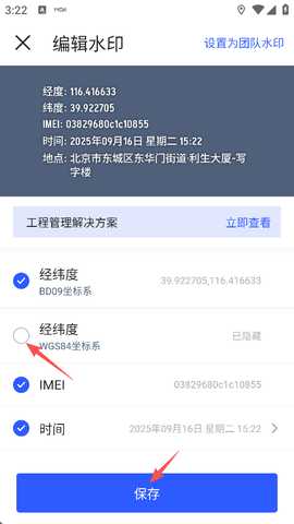 6、可以看到两种不同的经纬度坐标系,请根据需求自行显示或隐藏,当然,也可以设置其它相关信息,完成后点击屏幕下方的“保存”即可。