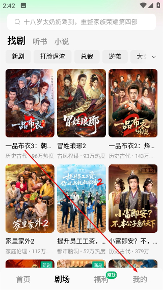 1、打开软件进入到剧场可以看到各种短剧