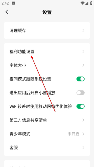 3、选择福利功能设置,打开福利设置界面。