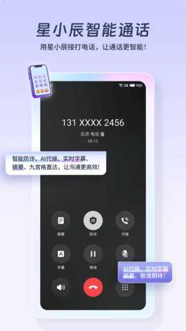 星小辰是一款智能化的AI通话软件,提升用户的通话体验,具备传统的拨号功能,还融入了多种智能工具,能够在通话过程中实时分析来电,识别潜在的诈骗电话,从而为用户提供及时的防诈骗提醒,帮助用户有效规避诈骗风险。