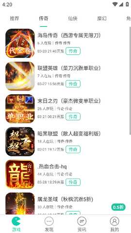 点击界面底部的“发现”按钮,还能查看全部游戏分类和具体游戏。