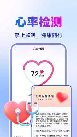 健康监测:通过智能设备,随时测量血氧和心率,获得关键健康指标。