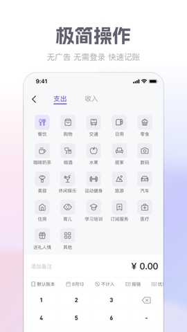 轻松输入消费金额和选择记账类型,快速完成记账,节省时间并提高效率。