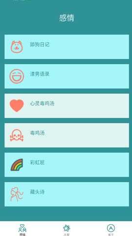 软件设有专门的情感内容区域,找到多种风格的情感语录和日记文本,适合社交分享或个人记录。