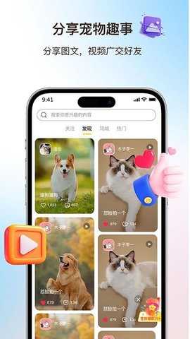 宠物社区:在社区中浏览宠物视频和养宠话题,获取丰富的养宠信息。