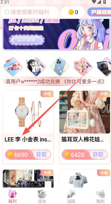 登录后,浏览福利专区,选择自己感兴趣的礼品进行兑换。点击礼品后,系统会提示所需金币数量。