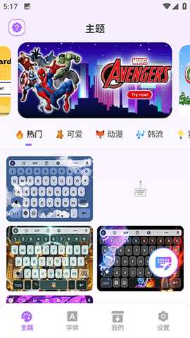 持续更新的主题库:主题库不断引入新的设计元素,确保键盘样式始终跟随流行趋势。
