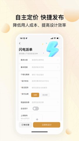 需求发布:客户可以详细描述项目背景和要求,方便设计师主动接单。