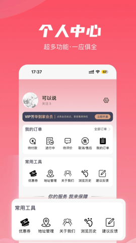 个人中心:用户可方便地查看个人信息、订单详情及服务记录。