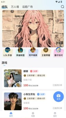 陪练大厅:用户可按游戏、段位、价格和评分筛选陪练师,快速找到合适的陪玩。