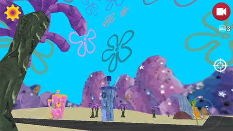 进入游戏后,将出现在蟹堡王的门口,使用左侧的轮盘控制海绵宝宝的移动,右侧的轮盘则用来调整视角,轻松适应游戏环境。