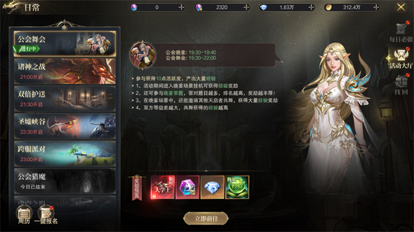 公会晚宴与舞会,不仅是社交的天堂,更是经验的宝库!晚宴挂机:轻松挂机,经验自然来。晚宴答题:智慧碰撞,排名越高奖励越丰厚!共舞时刻:邀请伙伴共舞,等级差越大,经验越多!
