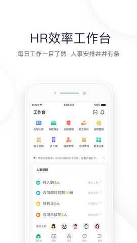 1. 高效的工作台用户可以在工作台上清晰地查看每日工作安排,所有待办事项一目了然,方便HR快速了解工作进度。