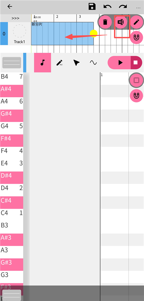 在音符选中状态下,长按旁边的磁铁图标可以调整音符的时值,方便用户精细化编辑旋律。