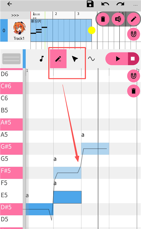 7、点击音符旁边的图标,可进行修改曲线界面。