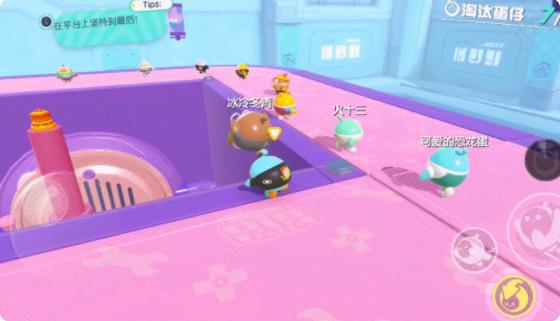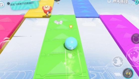 1、除了最基本的跑跳飞扑以外,我们还可以使用一个类似技能的“滚蛋”模式。激活后蛋仔就会变成圆球向前滚动,速度快,可跳跃,但是碰撞后会发生较大的反弹,所以建议大家在障碍物不多的时候使用。比如竞速赛中的直道,或是用于快速通过机关地板。