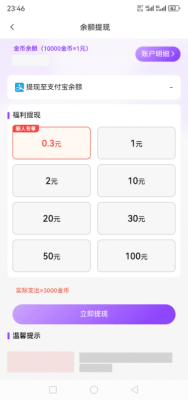 完成任务后,用户可在提现页面查看自己的金币余额,并按比例进行提现,确保资金快速到账。