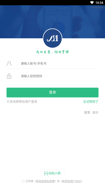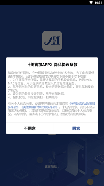 下载并安装打开美管加app,阅读协议自行选择是否同意