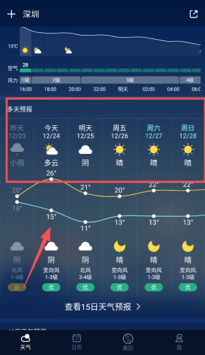 7日天气预报:查看未来7天的天气变化,包括温度、风向和空气质量等信息。