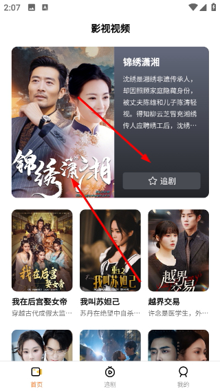 1、在影视视频首页找到锦绣潇湘,点击追剧按钮即可进入剧集播放页面。